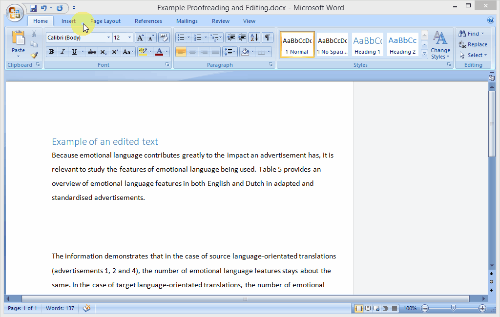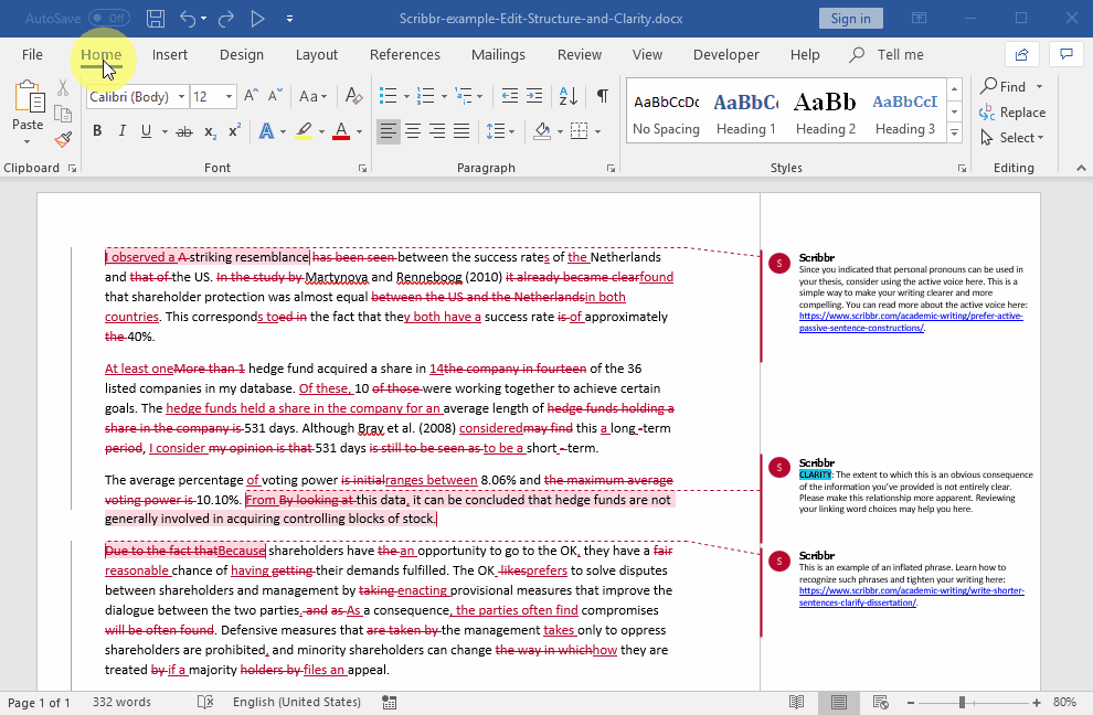 Don’t forget to do a final spell check to ensure your text is free of common errors, such as duplicated punctuation and double spaces. Once you’ve processed all the changes and deleted all the comments, the changes will no longer be visible to others. You can submit this document as your final version!