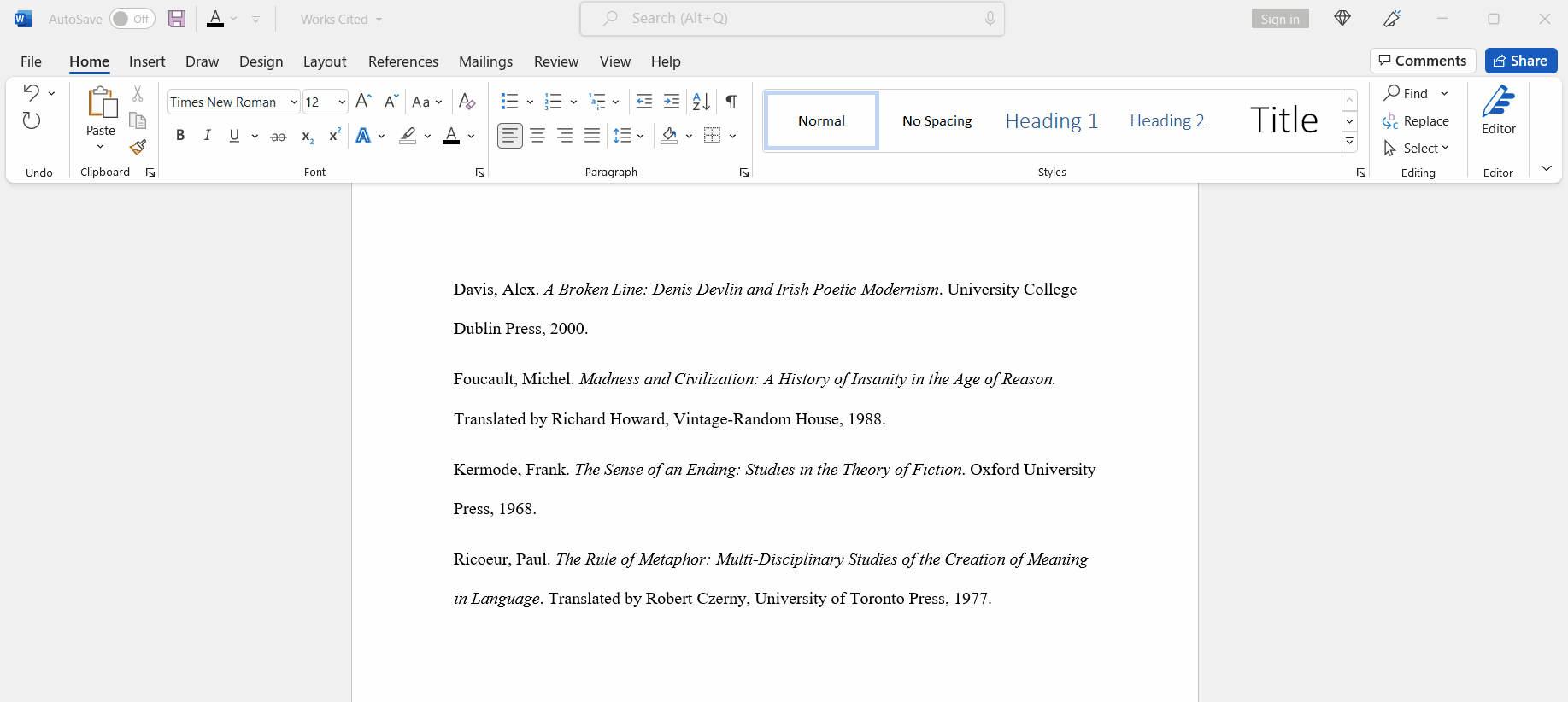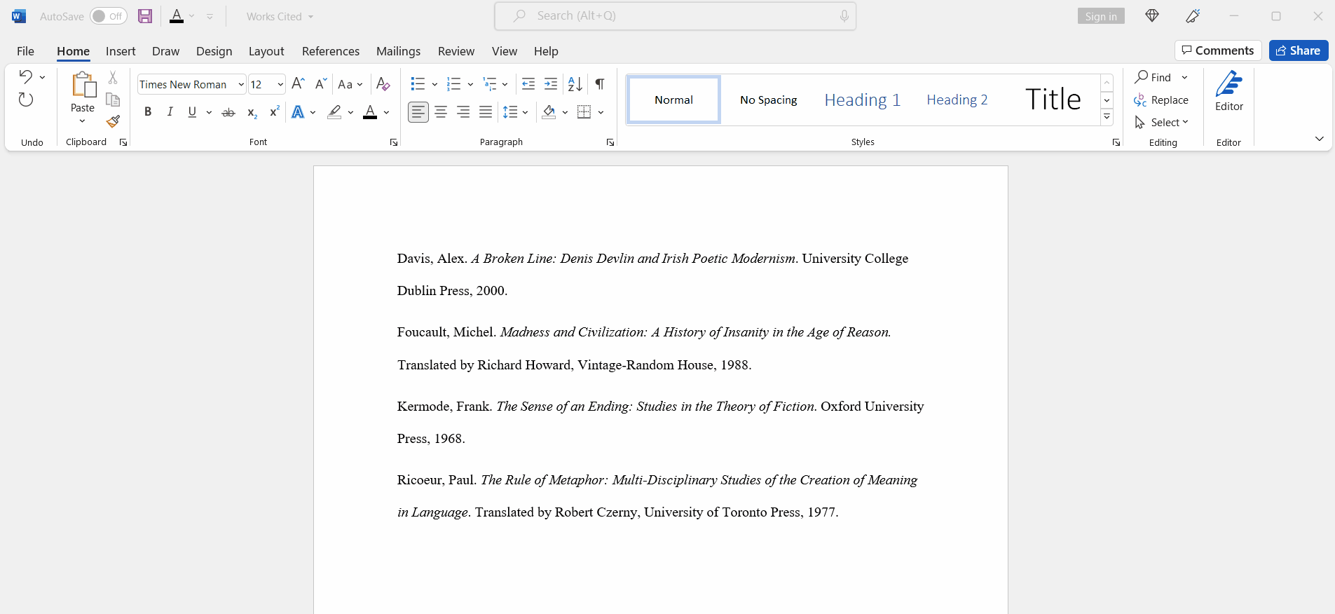 When the hanging indent is applied, for each reference, every line except the first is indented. This helps the reader see where one entry ends and the next begins.
