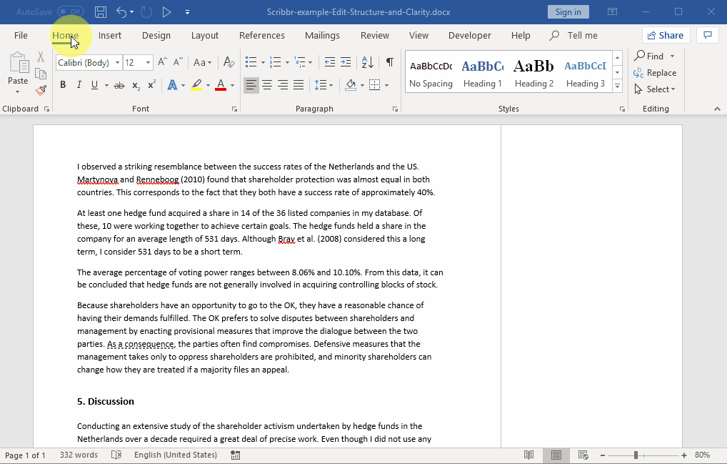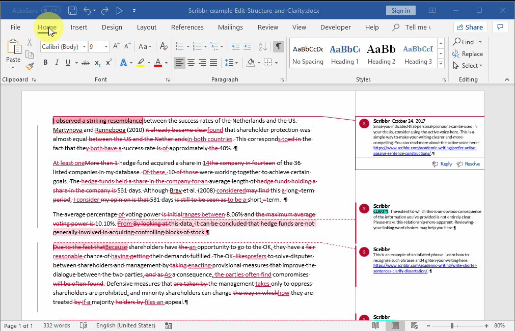 Don’t forget to do a final spell check to ensure your text is free of common errors, such as duplicated punctuation and double spaces. Once you’ve processed all the changes and deleted all the comments, the changes will no longer be visible to others. You can submit this document as your final version!