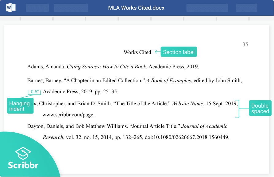 The Works Cited list is included on a separate page at the end of your paper. You list all the sources you referenced in your paper in alphabetical order. Don’t include sources that weren’t cited in the paper, except potentially in an MLA annotated bibliography assignment.