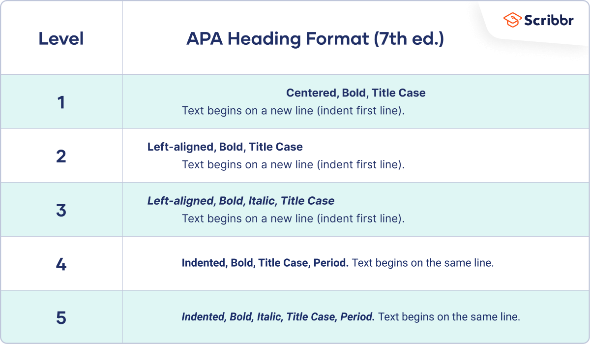 APA provides guidelines for formatting up to five levels of heading within your paper. Level 1 headings are the most general, level 5 the most specific.